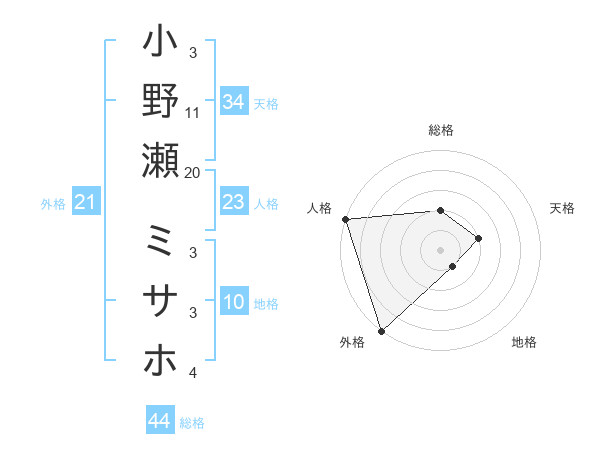 小野瀬 ミサホさんを姓名の画数から五運を鑑定