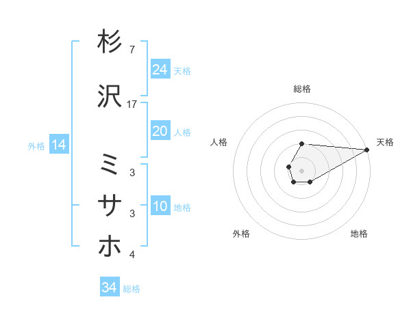杉沢 ミサホさんを姓名の画数から五運を鑑定