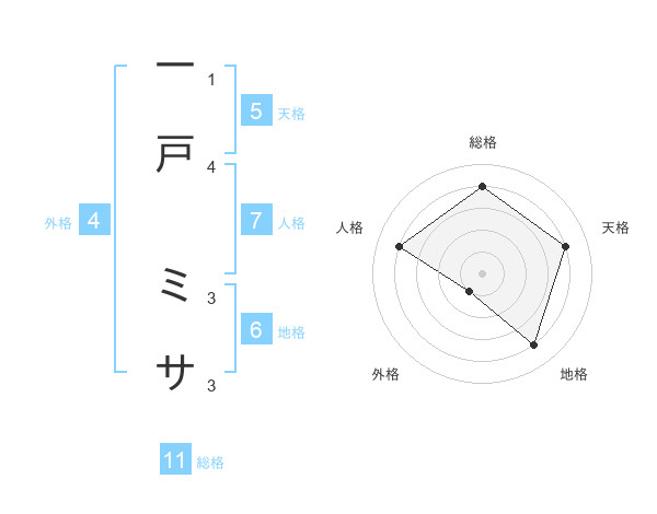 一戸 ミサさんの天格は5画の4点!