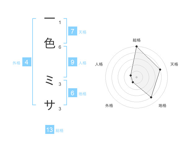 一色 ミサさんの総格は13画の5点!