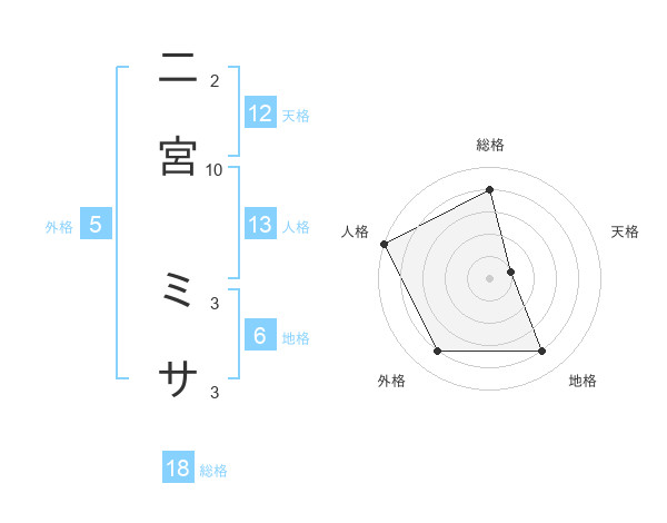 二宮 ミサさんの天格は12画の1点!