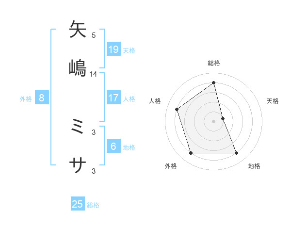 矢嶋 ミサさんの外格は8画の4点!