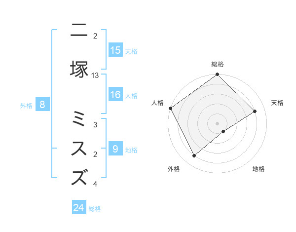 二塚 ミスズさんの総格は24画の5点!