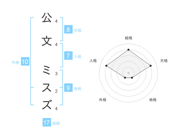 公文 ミスズさんを姓名の画数から五運を鑑定