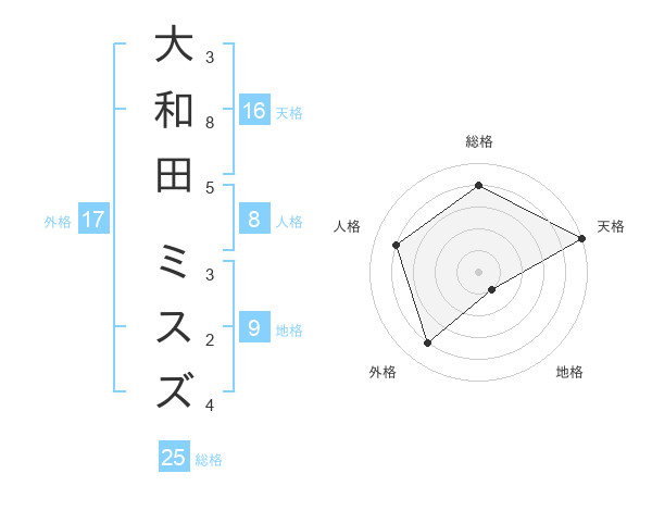 大和田 ミスズさんを姓名の画数から五運を鑑定