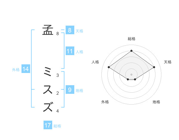 孟 ミスズさんを姓名の画数から五運を鑑定