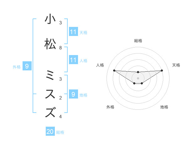 小松 ミスズさんを姓名の画数から五運を鑑定