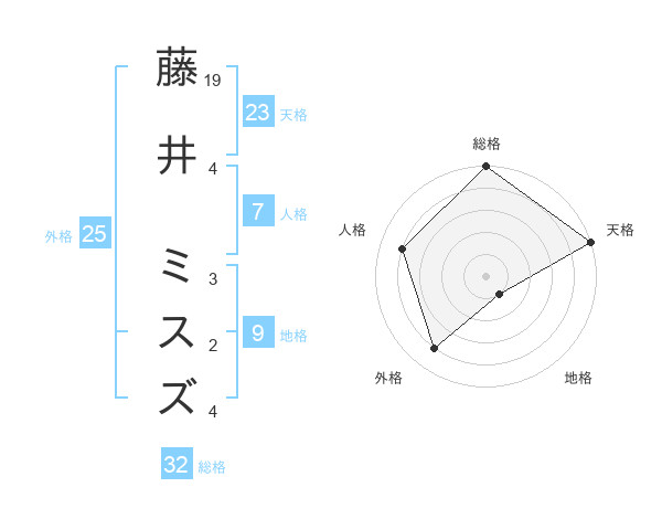 藤井 ミスズさんの天格は23画の5点!
