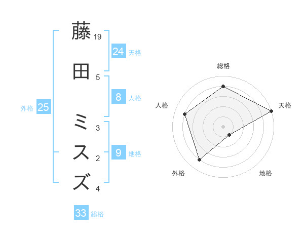 藤田 ミスズさんを姓名の画数から五運を鑑定