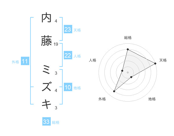 内藤 ミズキさんを姓名の画数から五運を鑑定