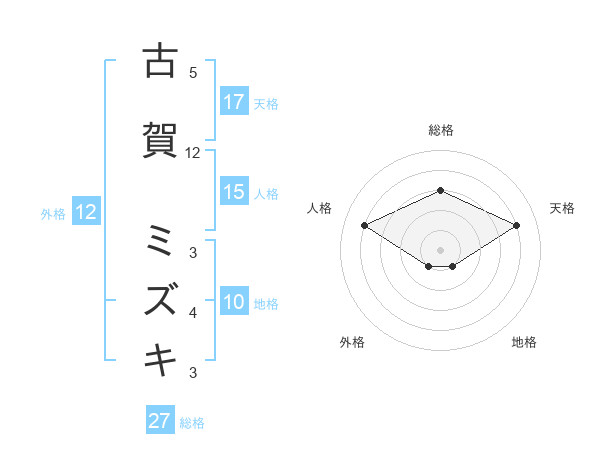 古賀 ミズキさんの総格は27画の3点!