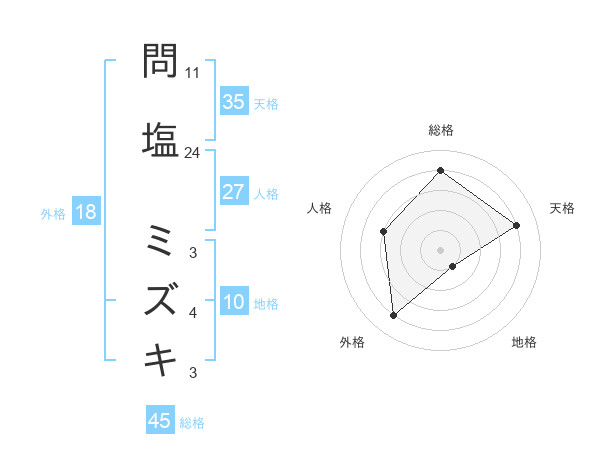 問塩 ミズキさんを姓名の画数から五運を鑑定