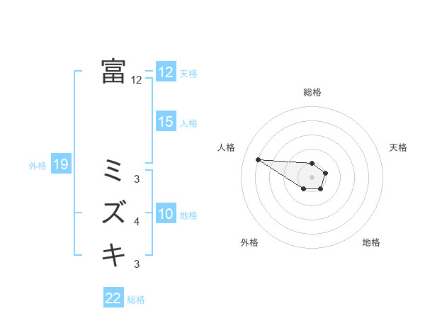 富 ミズキさんの総格は22画の1点!