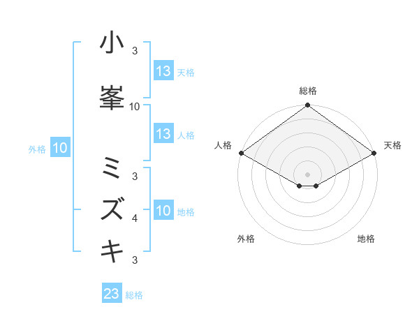 小峯 ミズキさんの天格は13画の5点