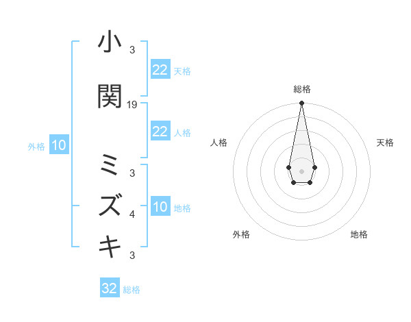 小関 ミズキさんの総格は32画の5点!