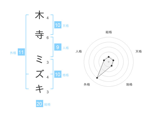 木寺 ミズキさんの総格は20画の1点!