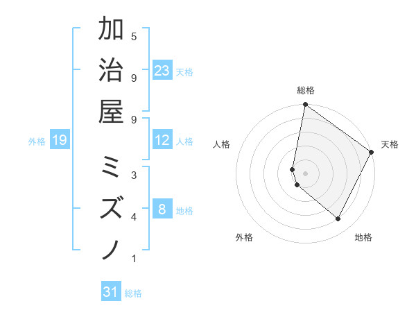 加治屋 ミズノさんを姓名の画数から五運を鑑定