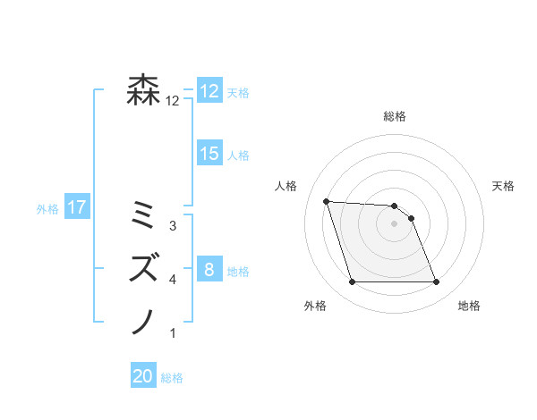 森 ミズノさんの天格は12画の1点!