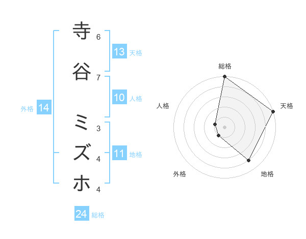 寺谷 ミズホさんの総格は24画の5点!