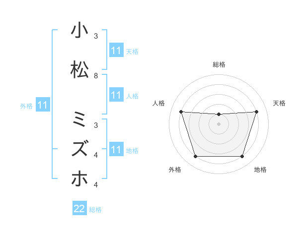 小松 ミズホさんの外格は11画の4点!