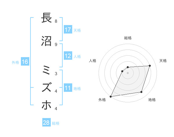 長沼 ミズホさんを姓名の画数から五運を鑑定