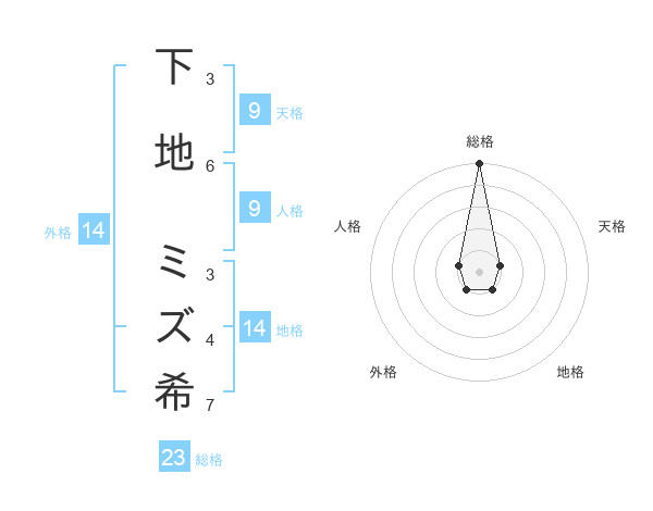 下地 ミズ希さんを姓名の画数から五運を鑑定