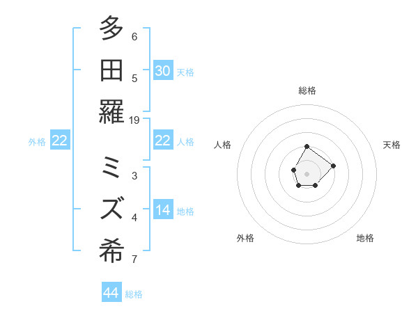 多田羅 ミズ希さんを姓名の画数から五運を鑑定