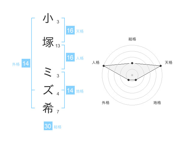 小塚 ミズ希さんを姓名の画数から五運を鑑定