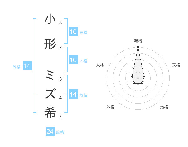 小形 ミズ希さんを姓名の画数から五運を鑑定