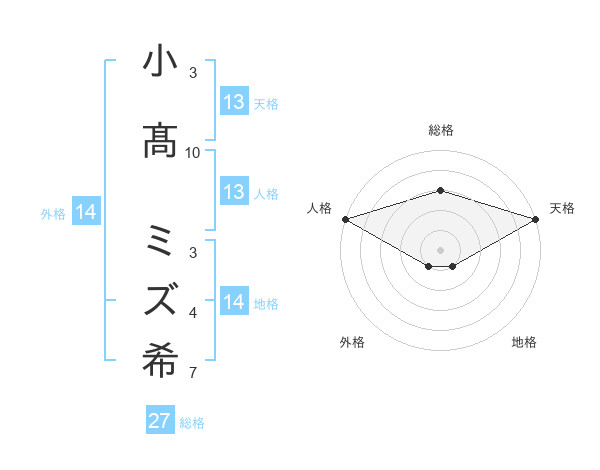 小髙 ミズ希さんを姓名の画数から五運を鑑定