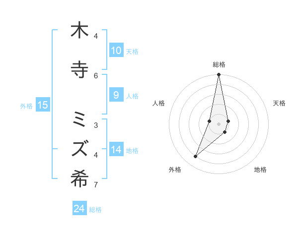木寺 ミズ希さんを姓名の画数から五運を鑑定