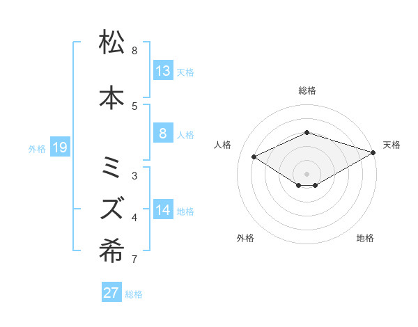 松本 ミズ希さんを姓名の画数から五運を鑑定