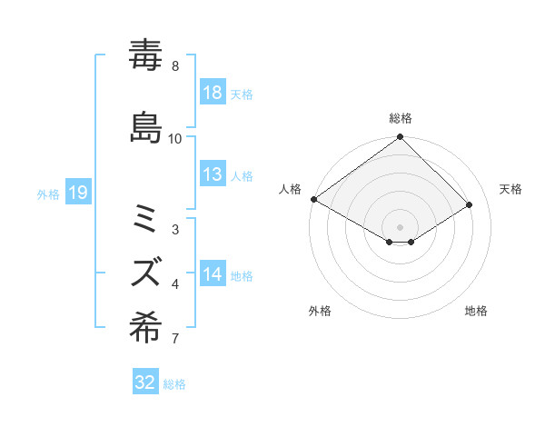 毒島 ミズ希さんを姓名の画数から五運を鑑定