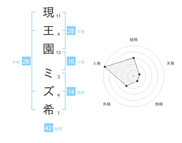 現王園 ミズ希さんの総格は42画の3点