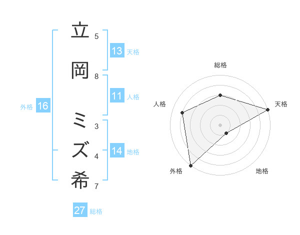 立岡 ミズ希さんを姓名の画数から五運を鑑定