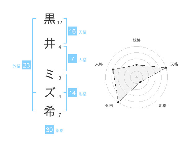 黒井 ミズ希さんの総格は30画の2点!