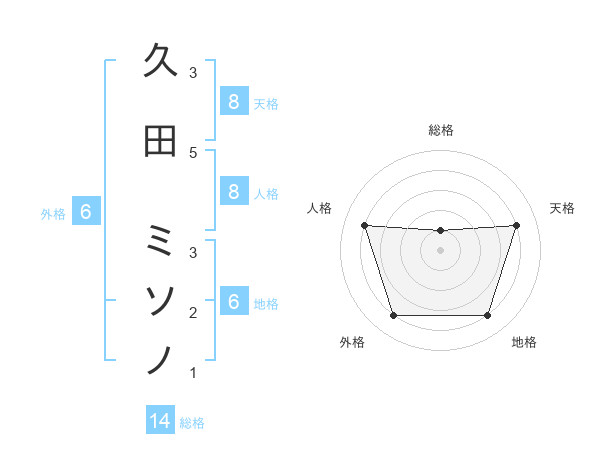 久田 ミソノさんを姓名の画数から五運を鑑定