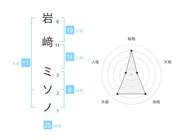 岩﨑 ミソノさんを姓名の画数から五運を鑑定