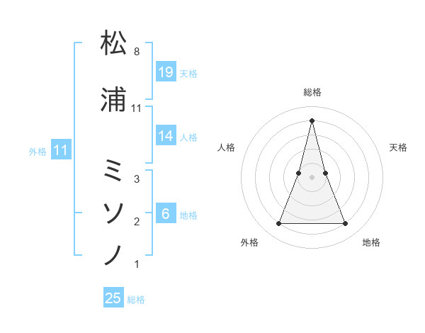 松浦 ミソノさんを姓名の画数から五運を鑑定