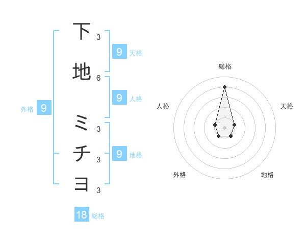 下地 ミチヨさんの総格は18画の4点!