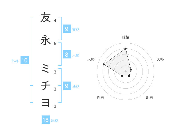 友永 ミチヨさんを姓名の画数から五運を鑑定