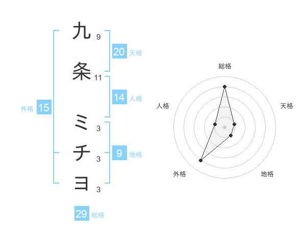 九条 ミチヨさんを姓名の画数から五運を鑑定