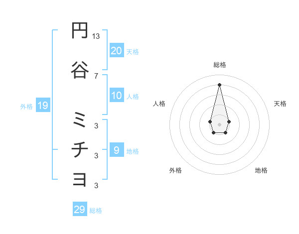 円谷 ミチヨさんを姓名の画数から五運を鑑定