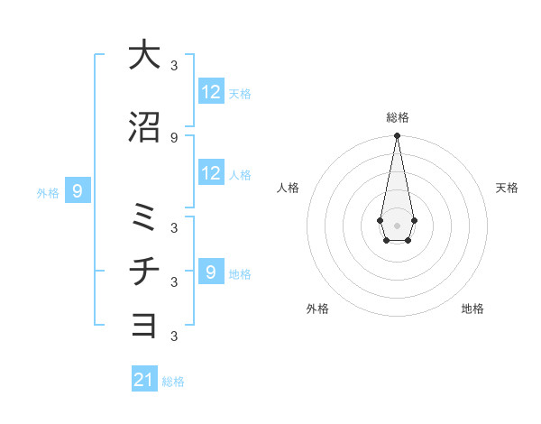 大沼 ミチヨさんを姓名の画数から五運を鑑定