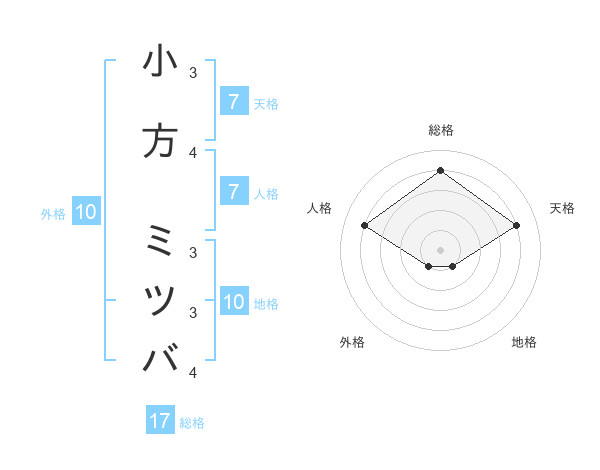 小方 ミツバさんを姓名の画数から五運を鑑定