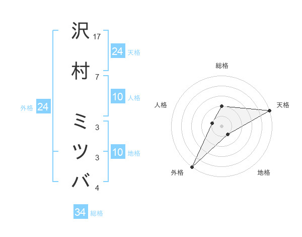 沢村 ミツバさんを姓名の画数から五運を鑑定