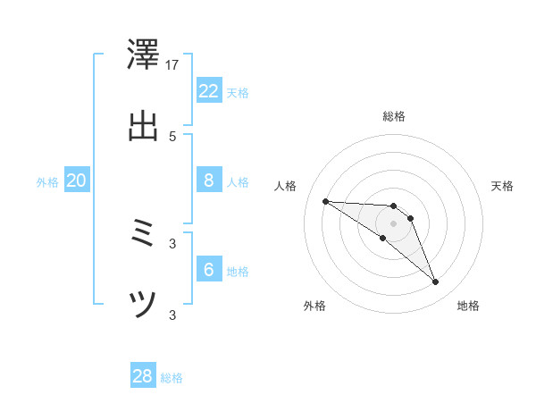 澤出 ミツさんを姓名の画数から五運を鑑定