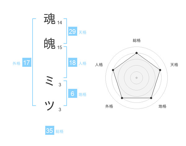 魂魄 ミツさんの総格は35画の4点!