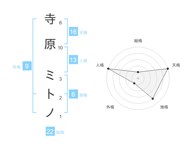 寺原 ミトノさんの総格は22画の1点!