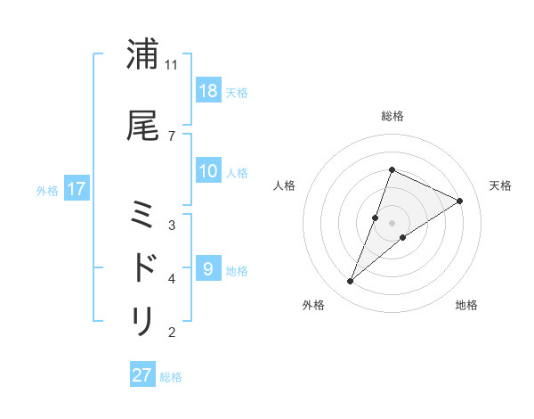 浦尾 ミドリさんを姓名の画数から五運を鑑定
